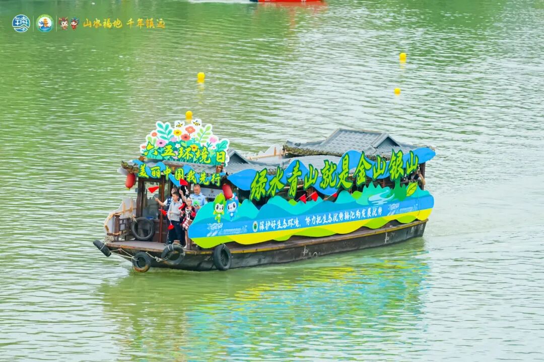 陆上宣传余热未散,水上游江又拉开帷幕。搭载着“美丽中国我先行”标语和㵲阳河“美丽河湖”绿色名片的宣传船,伴着“山更青啊水更绿,让中国更美丽……”的歌声在㵲阳河上前行,让现场观众深刻感受到生态保护的深远价值与全民共治的磅礴力量。