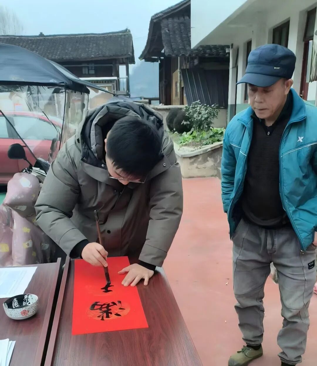 活动现场,展纸研磨,笔锋游走,“千家喜气庆团圆”等一幅幅寓意吉祥的春联跃然纸上,搭配吉祥的朱红底色,展现了对美丽乡村的热切憧憬,吸引了众多村民驻足观赏、踊跃领取。镇远分局志愿者们将现场书写的春联逐一赠送给村民,以笔墨传递温暖,用书法送上祝福。在开展义写春联送祝福的同时,志愿者们还向马家坪村的村民宣传了消防安全,道路交通安全,禁毒及反诈,爱护环境等知识。