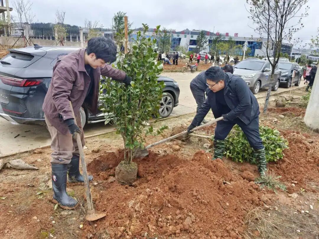 2月28日,黔东南州生态环境局黎平分局到中潮工业园区参加黎平县2026年“厚植生态根基,巩固发展优势”义务植树活动。